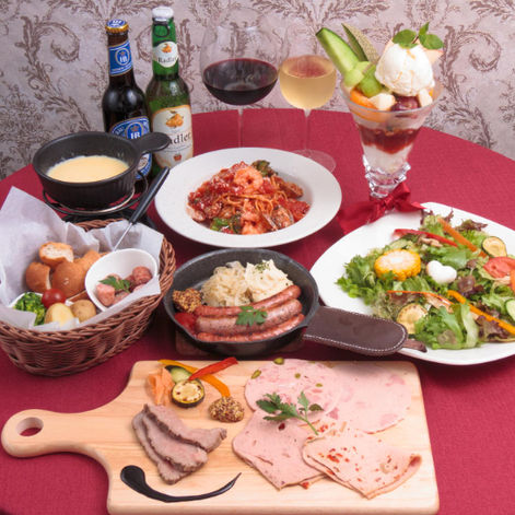 お食事は、オーストリア・ドイツ料理を基本とし、本場のドイツパンや、手作りのソーセージやハム、具沢山のキッシュなど。